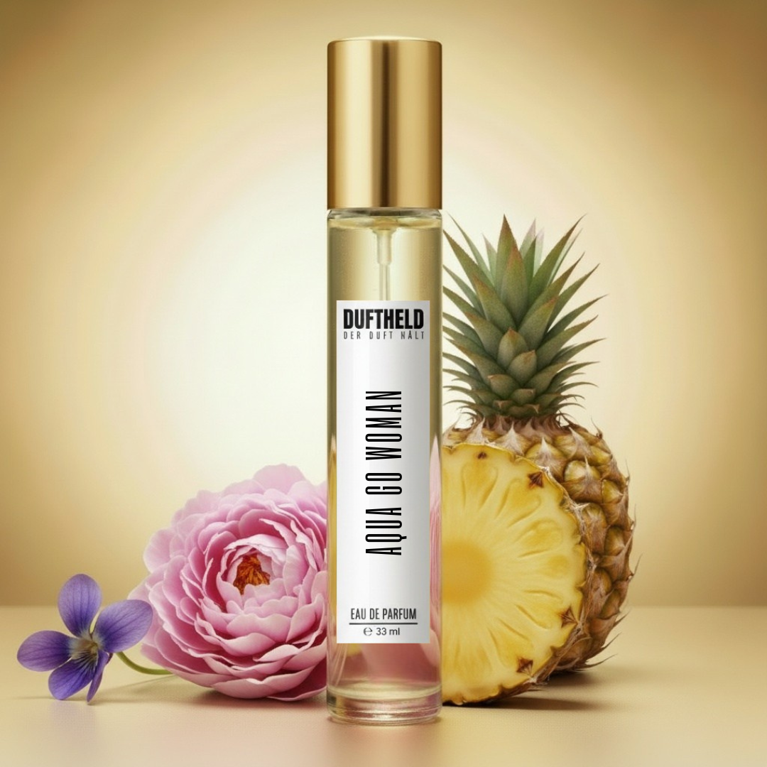 Aqua Go Woman ist ein belebendes Damen Eau de Parfum, das Frische und Eleganz harmonisch verbindet. Veilchen, Pfingstrose und Ananas eröffnen die Komposition mit einer fruchtig floralen Kopfnote. In der Herznote entfalten Maiglöckchen, Jasmin und Freesie ihre blumige Intensität und schenken dem Duft Leuchtkraft. Sandelholz und Amber runden die Basis mit Wärme und Tiefe ab. Ein moderner Duft, der Weiblichkeit, Frische und Sinnlichkeit perfekt vereint.